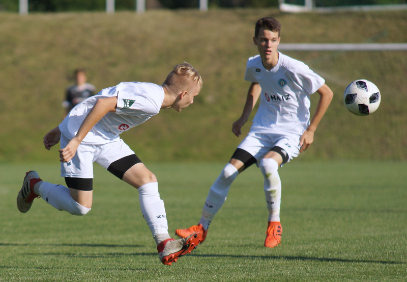Już w pierwszych meczach piłkarskiego turnieju Mistrzostw Polski Kadr Wojewódzkich U15 w ramach Ogólnopolskiej Olimpiady Młodzieży - Śląskie 2018 sypnęło golami. Bohaterem otwarcia okazał się Szymon Wlodarczyk, który w pierwszej połowie meczu z Lubelskim Związkiem Piłki Nożnej strzelił wszystkie trzy gole dla Mazowieckiego Związku Piłki Nożnej, kompletując klasycznego hat-tricka. Syn Piotra Włodarczyka, który ma na swoim koncie 4 występy w reprezentacji Polski, blisko 300 występów w ekstraklasie w barwach: Legii Warszawa, Ruchu Chorzów, Ślaska Wrocław, Widzewa Łódź i Zagłębia Lubin oraz Puchar Polski i mistrzowski tytuł wywalczony z Legią, a także grę w lidze francuskiej w barwach AJ Auxerre i greckiej w zespołach Aris Saloniki i OFI, udowadnia, że niedaleko pada jabłko od jabłoni...